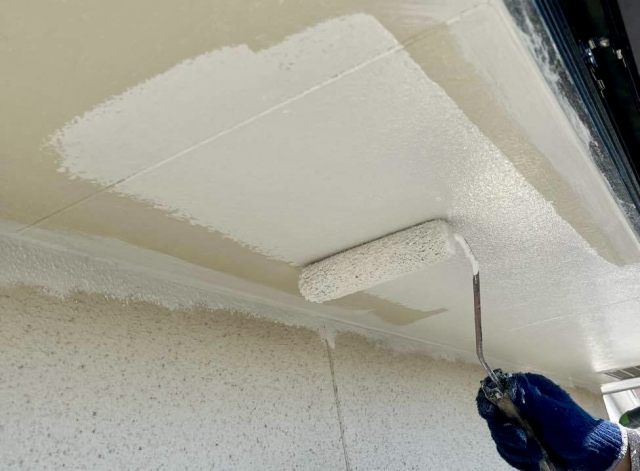 既存の軒天の素材が健全な状態を保っていて、塗装の剥がれや変色が見られる場合は塗装で対処します。