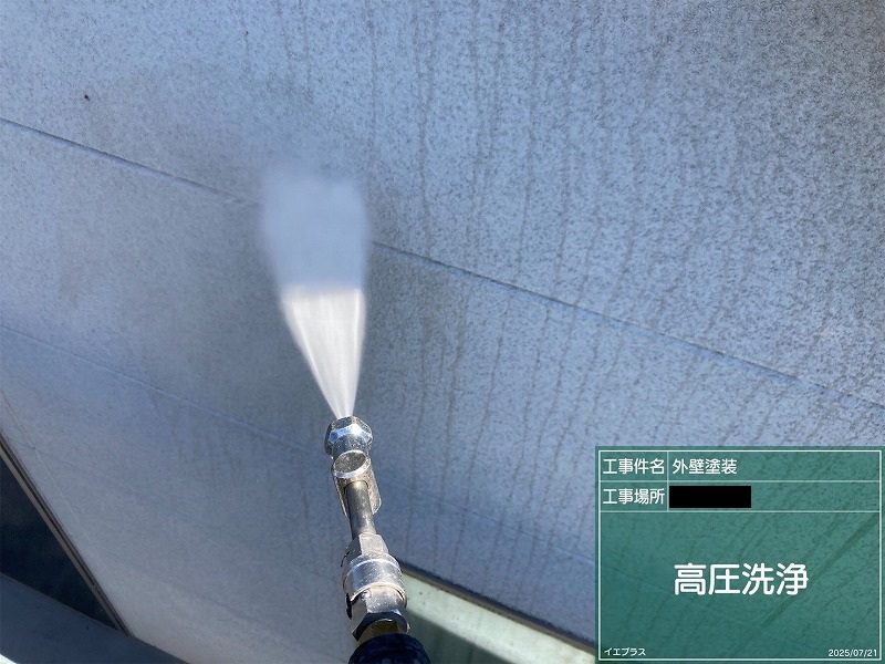 外壁作業工程は→外壁水洗い→養生作業→ダイナミックフィラー、下地材→アレスダイナミックトップ中塗り→アレスダイナミックトップ上塗り→完成!