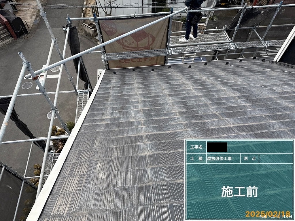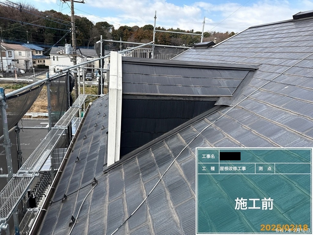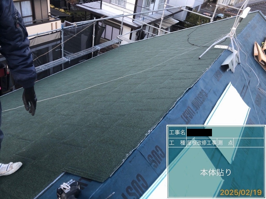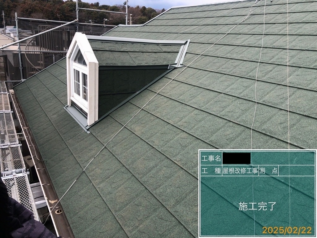 ・屋根は上葺き(カバー工法)FEROOFスカイメタルルーフスレート