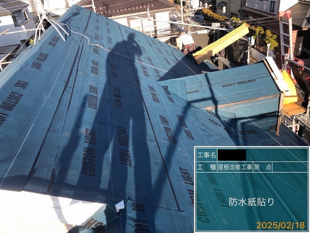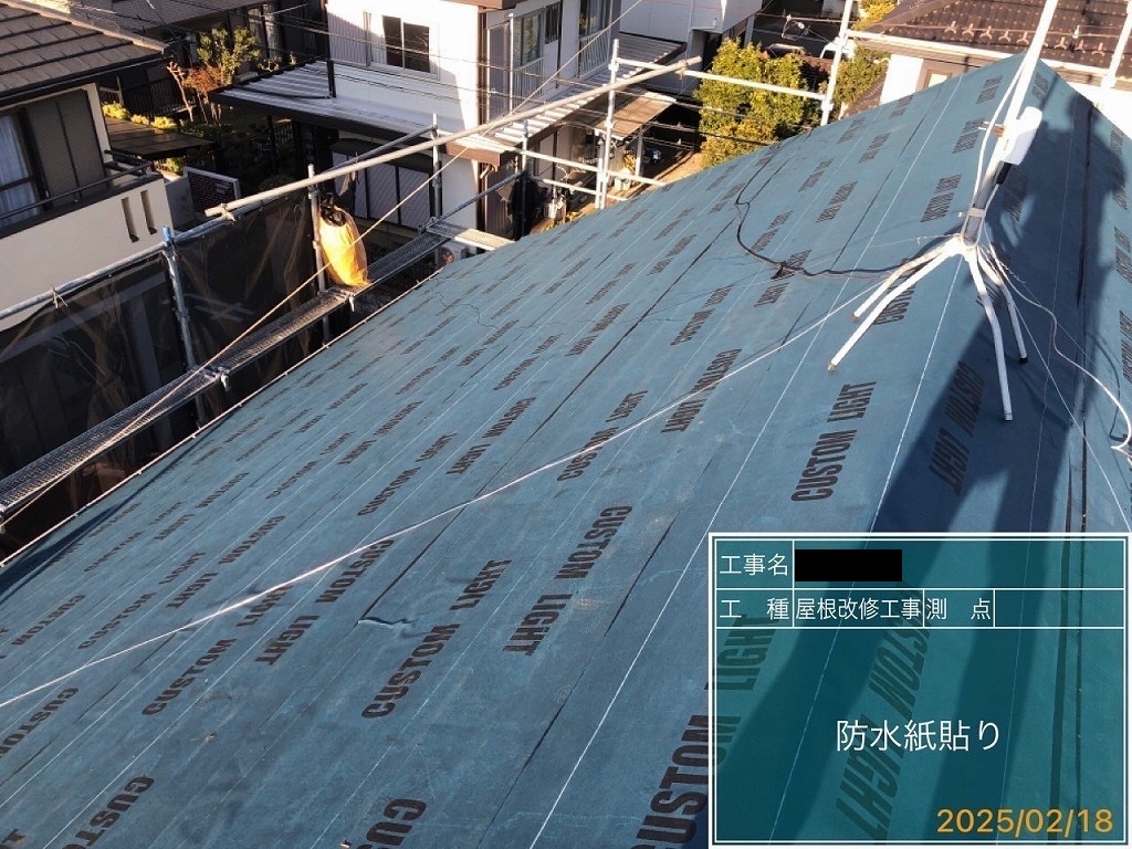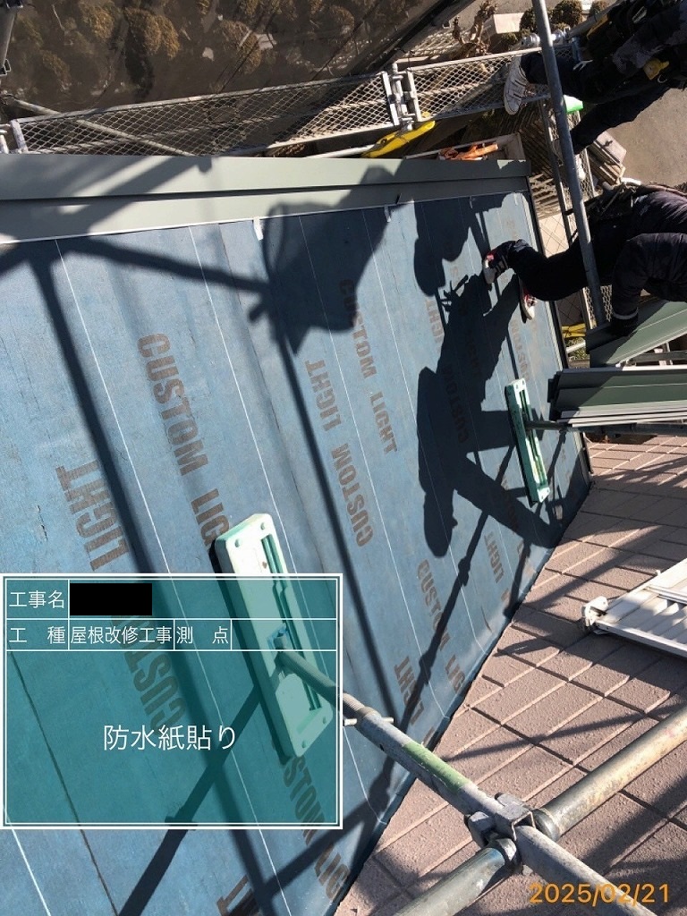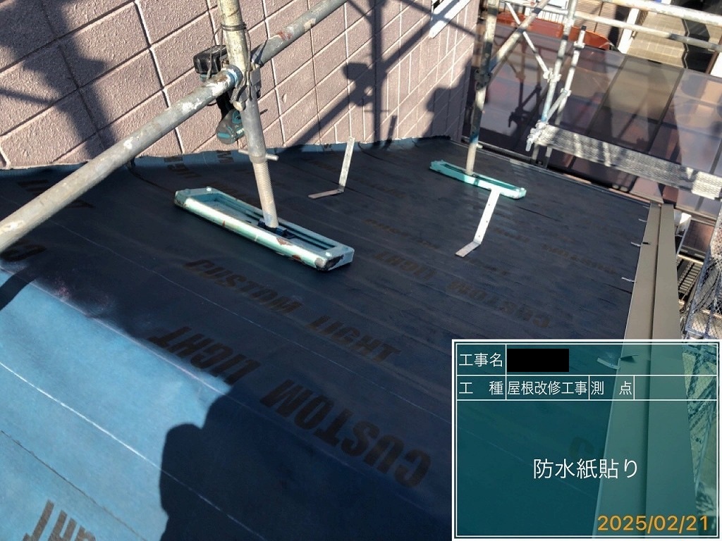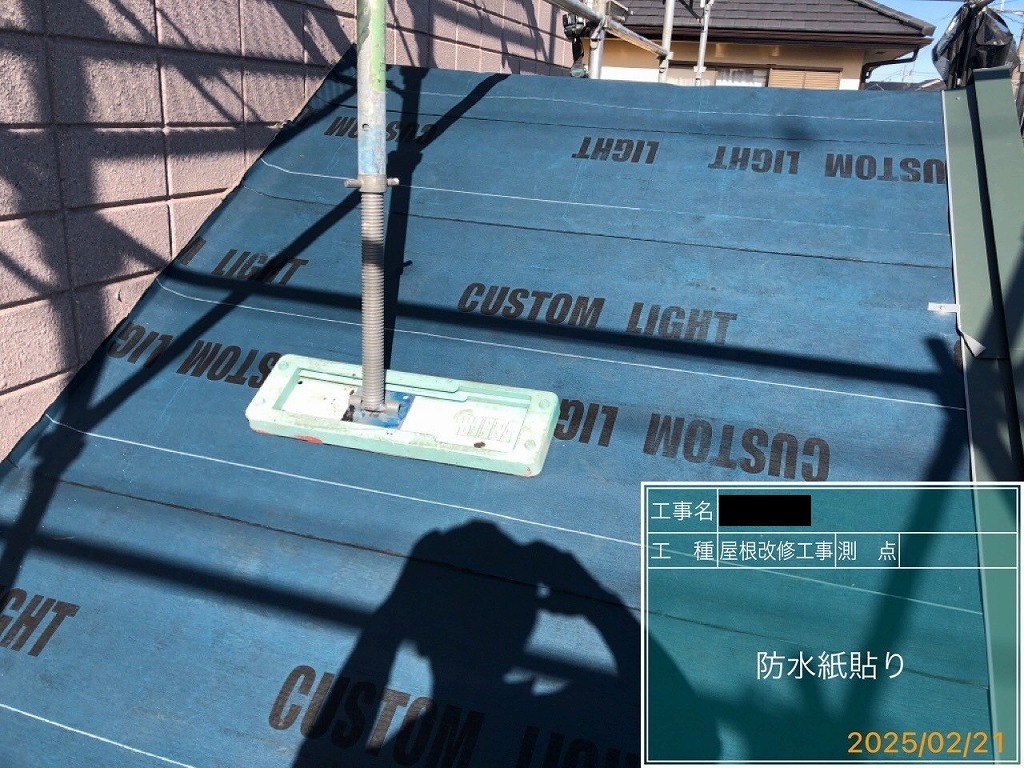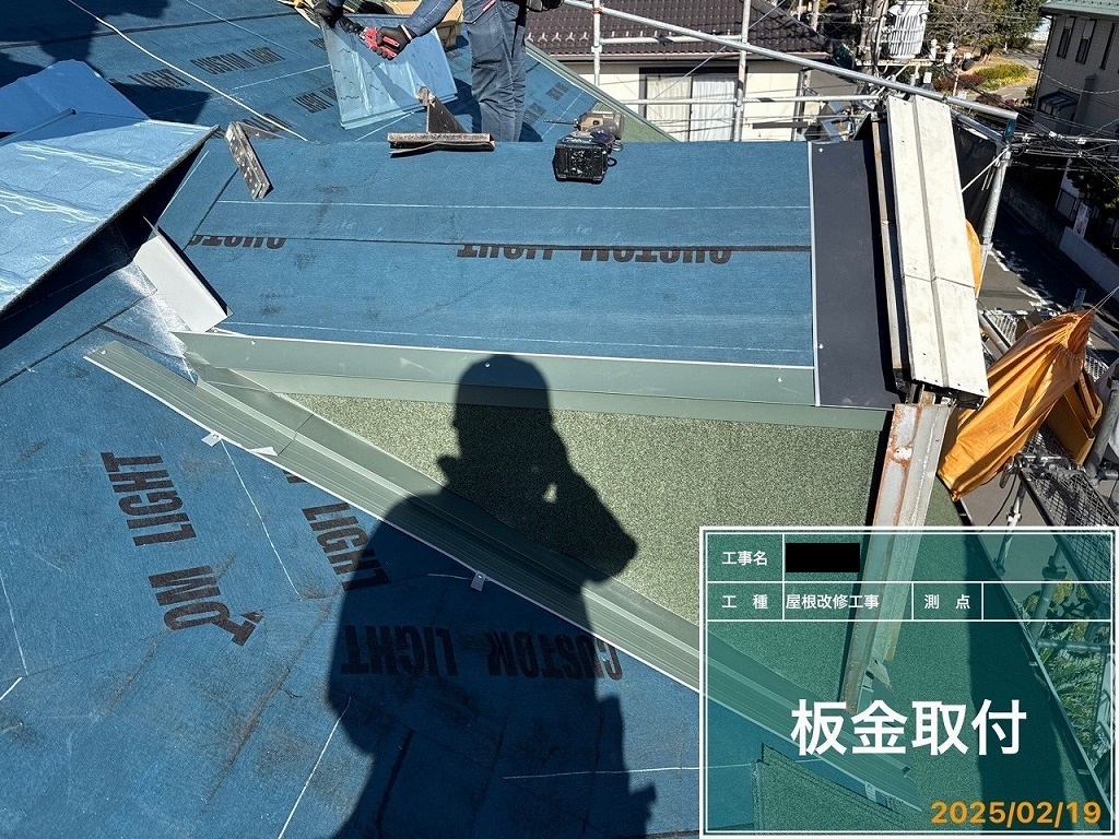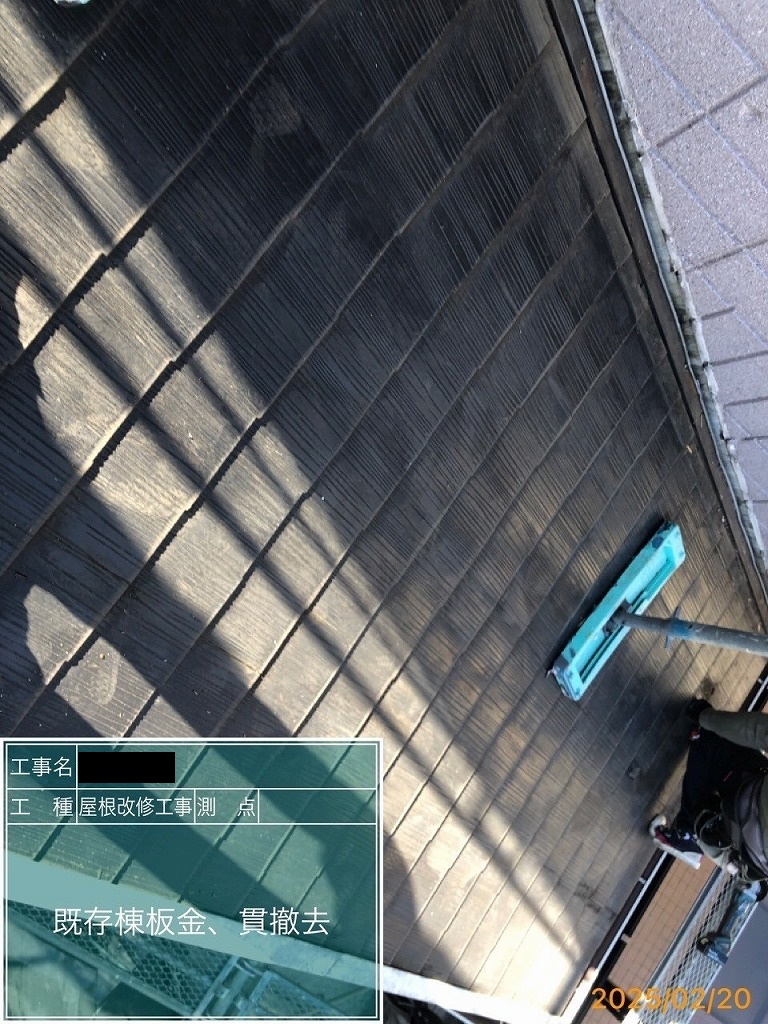 屋根は今後メンテナンスをしなくてもいいように、メンテナンスフリーの屋根材でカバー工法にしました。
