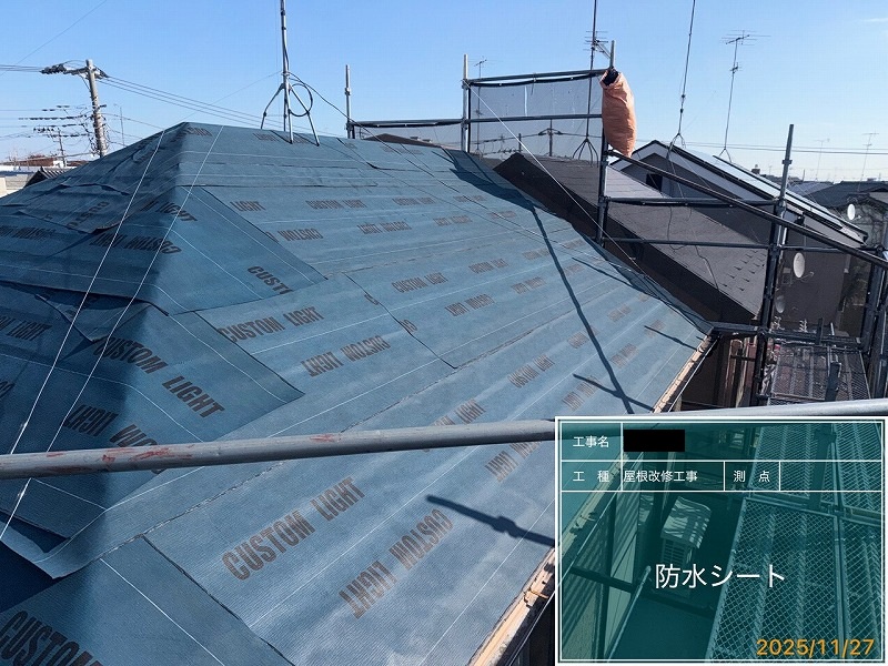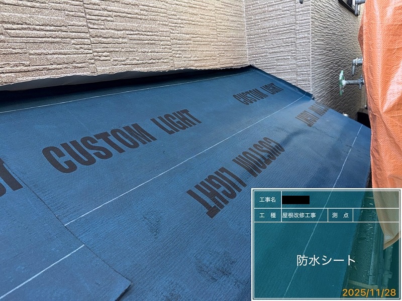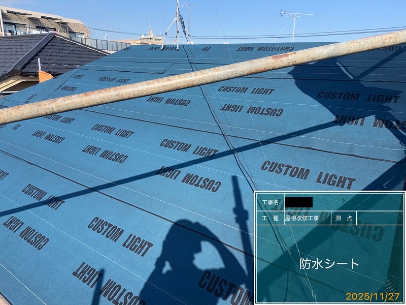 屋根は今後メンテナンスをしなくてもいいように、メンテナンスフリーの屋根材でカバー工法にしました。