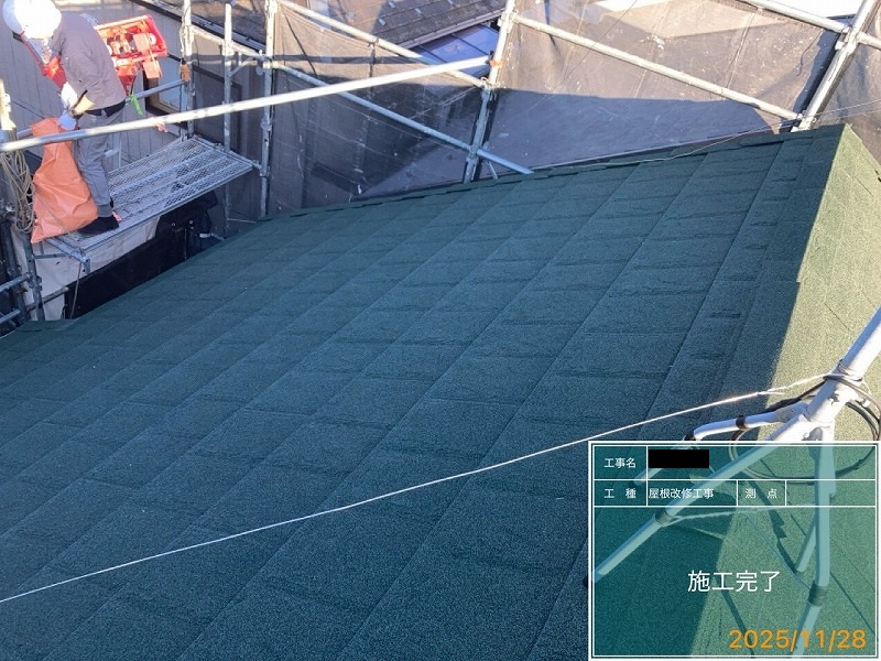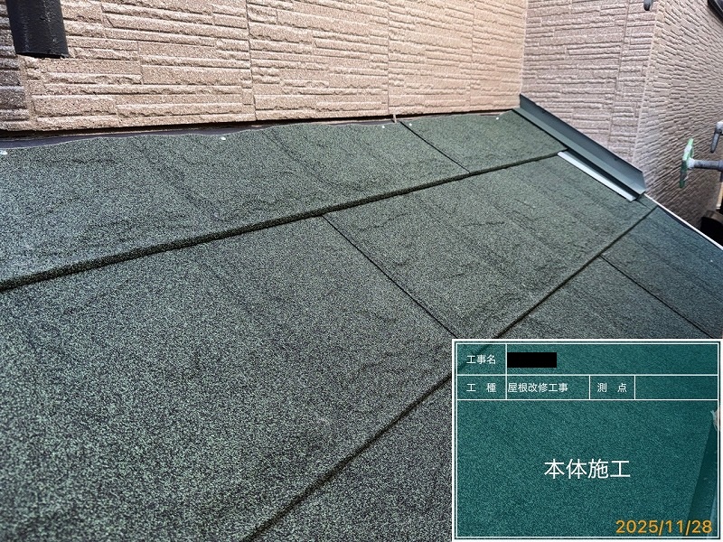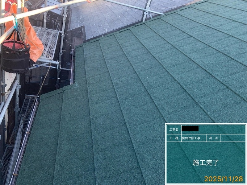 ・屋根は上葺き(カバー工法)FEROOFスカイメタルルーフスレート
