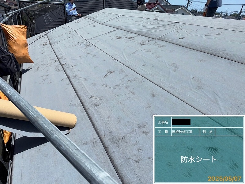 ・屋根作業工程は既存屋根役物撤去(棟押さえトタン、抜き板、雪止め)→既存屋根に防水シート→ケラバや唐草に専用役物取付→屋根本体取付→棟押さえ取付→完成!