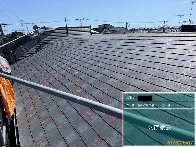 屋根は今後メンテナンスをしなくてもいいように、メンテナンスフリーの屋根材でカバー工法にしました。