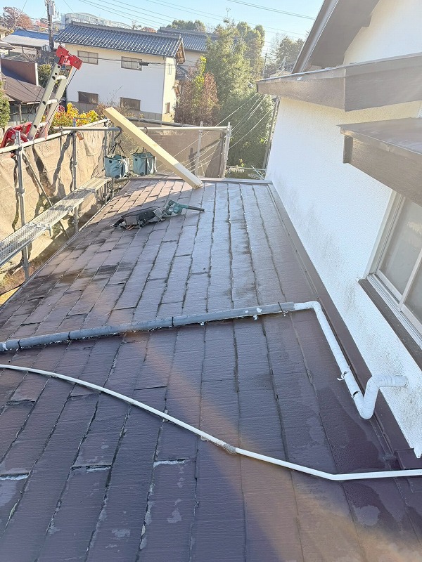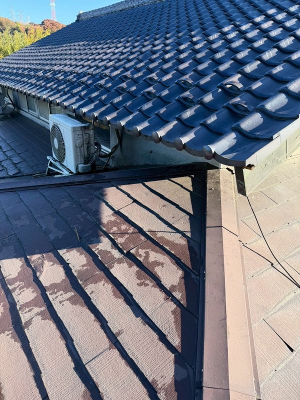 ・屋根は上葺き(カバー工法)FEROOFスカイメタルルーフスレート